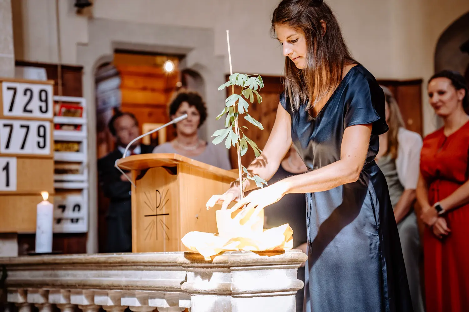Die Trauung, begleitet von einem wunderbaren Chor und einem einfühlsamen Pfarrer, war von einer unglaublichen Herzlichkeit geprägt. Die Luft war erfüllt von Liebe, Hingabe und Vorfreude, was der Tag noch bringen würde.
