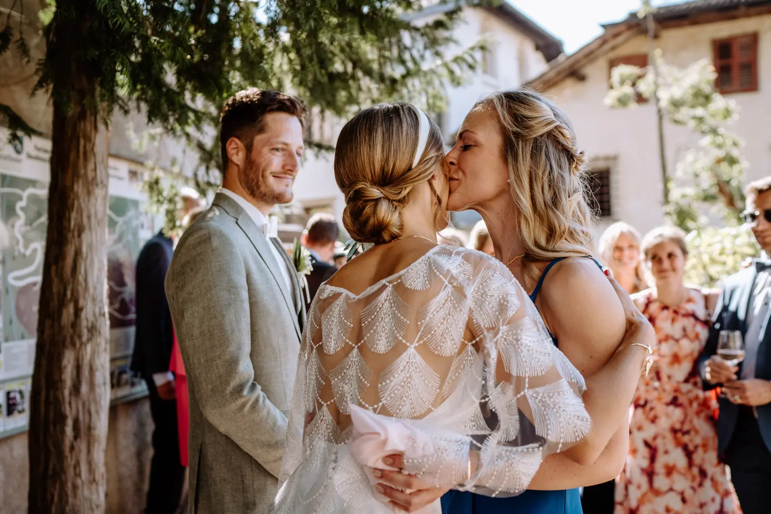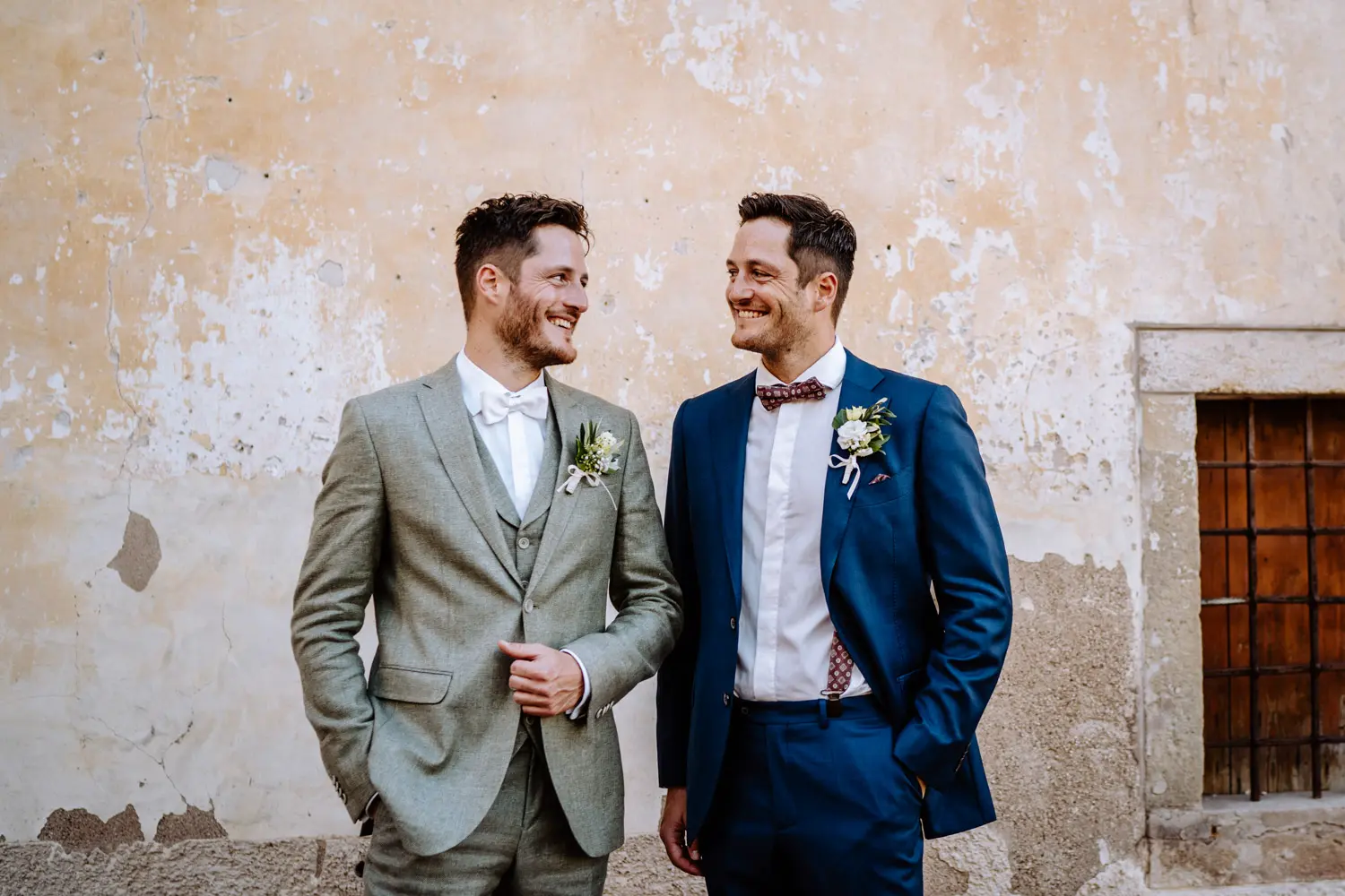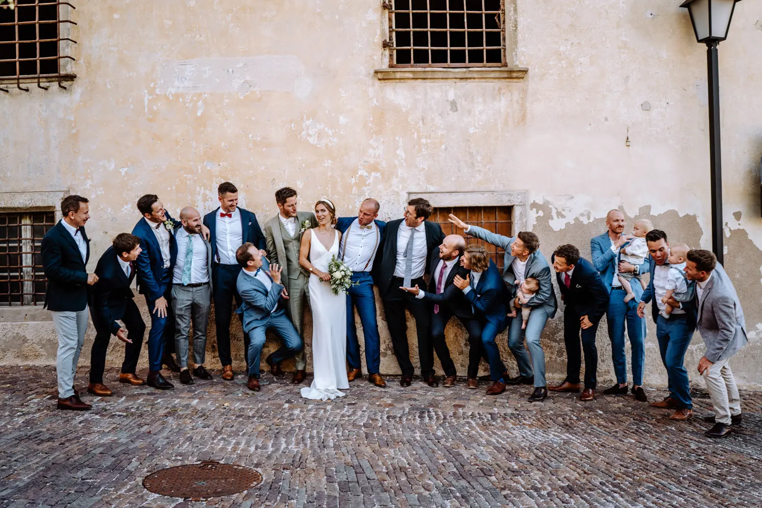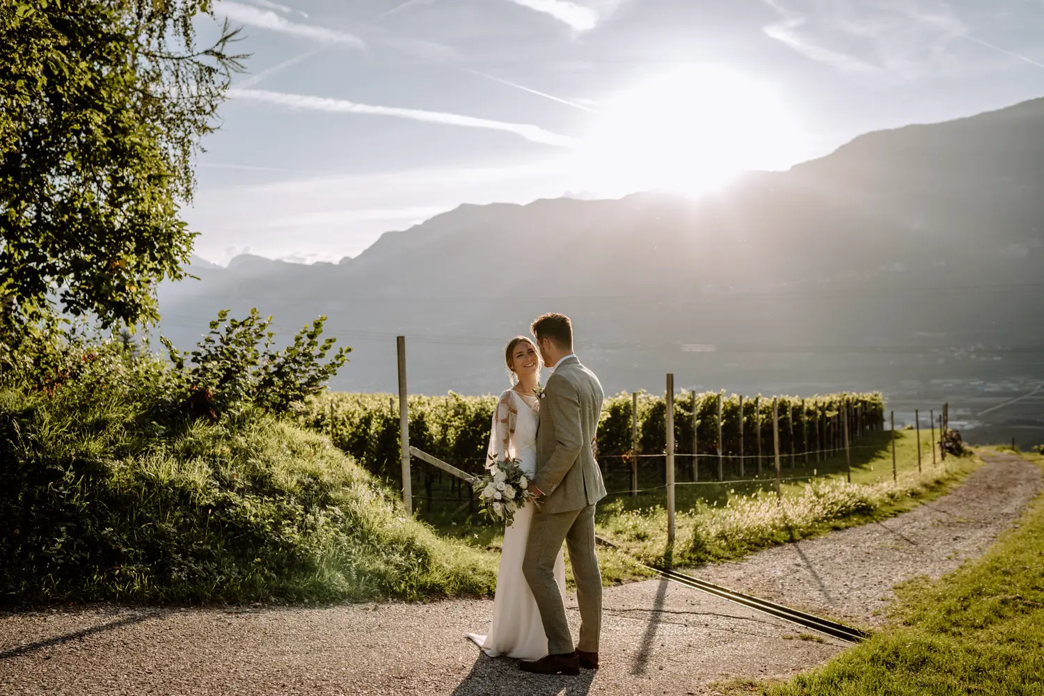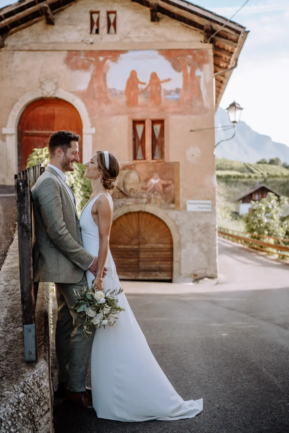 Die traumhaften Weinberge der Umgebung rund um den Pinzonerkeller als auch die malerischen, alten Häuser und Gassen in Pinzano bildeten eine einmalige Kulisse für Familienporträts und Hochzeitsfotos des Brautpaars. Hier entstanden Hochzeitsfotos bei perfektem Abendlicht, die die natürliche Schönheit und den Charme der Umgebung auf einzigartige Weise einfingen.