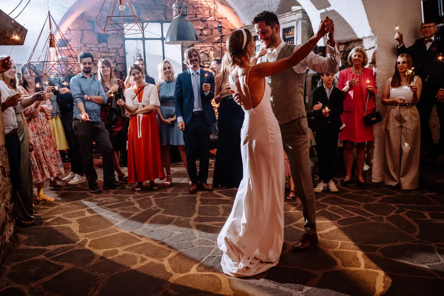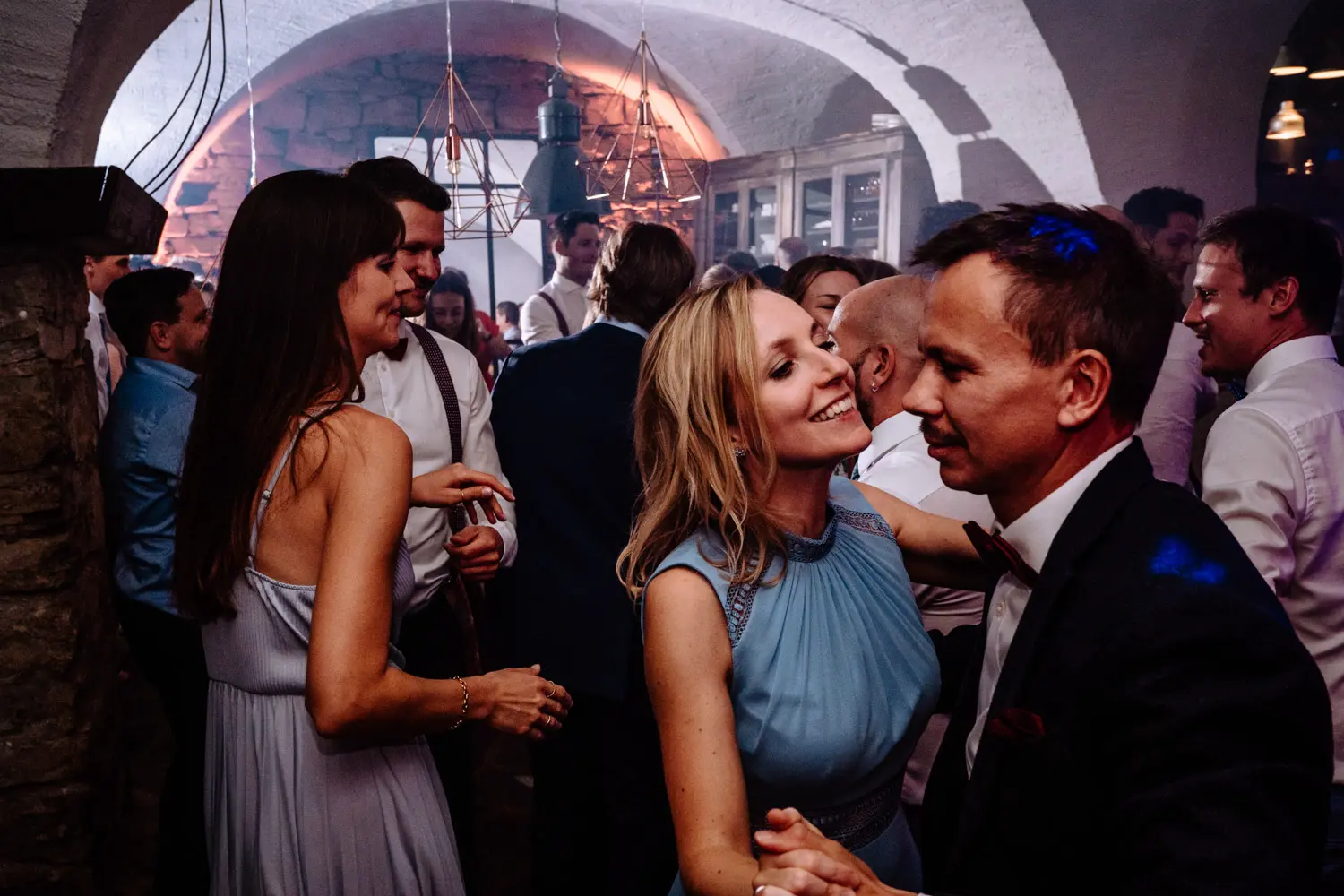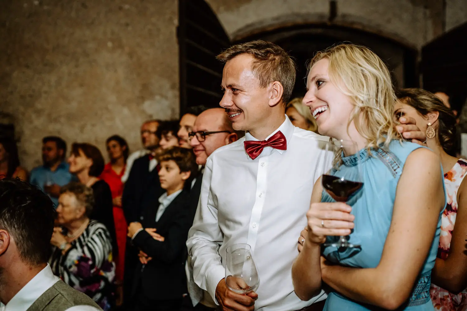 Der Höhepunkt des Abends war ohne Zweifel die ausgelassene Party im Partygewölbe des Pinzonerkellers. Mit DJ Marlon an den füllte sich der Raum schnell mit Energie, die Tanzfläche blieb nie leer. Die Musik, das Licht des Gewölbes und die besondere Umgebung sorgten für eine Stimmung, die sich immer weiter steigerte. Es wurde getanzt, gelacht und gefeiert, ohne auf die Uhr zu schauen. Bis tief in die Nacht hinein blieb die Atmosphäre mega, getragen von genau dieser Mischung aus guter Musik, vertrauten Menschen und der Freude über einen rundum gelungenen Hochzeitstag.