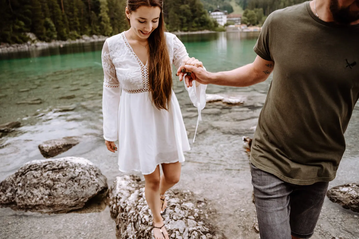 Within that one hour, we created couple photos that don’t just show how beautiful the nature around Lake Eibsee is, but above all how that moment felt for the two of them. Shared laughter, closeness, and that feeling of being in the right place at exactly the right time.