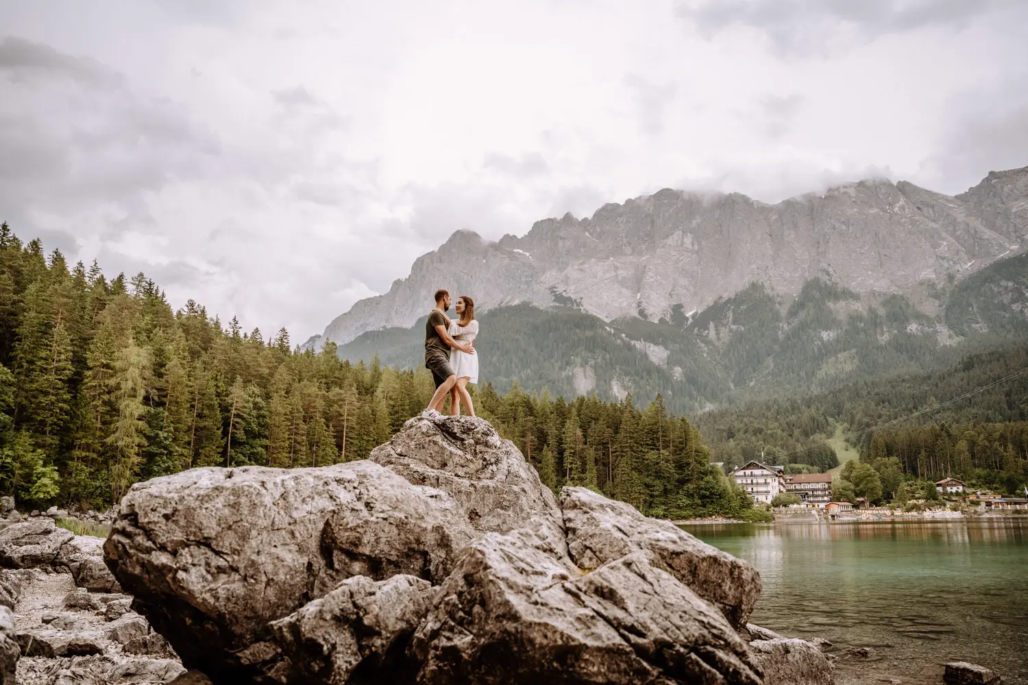 Despite the weather surprises at the start, the couple shoot at Lake Eibsee became one of those evenings you remember for a long time. The mood was relaxed, the light was soft, and the surroundings were impressive without ever taking over.