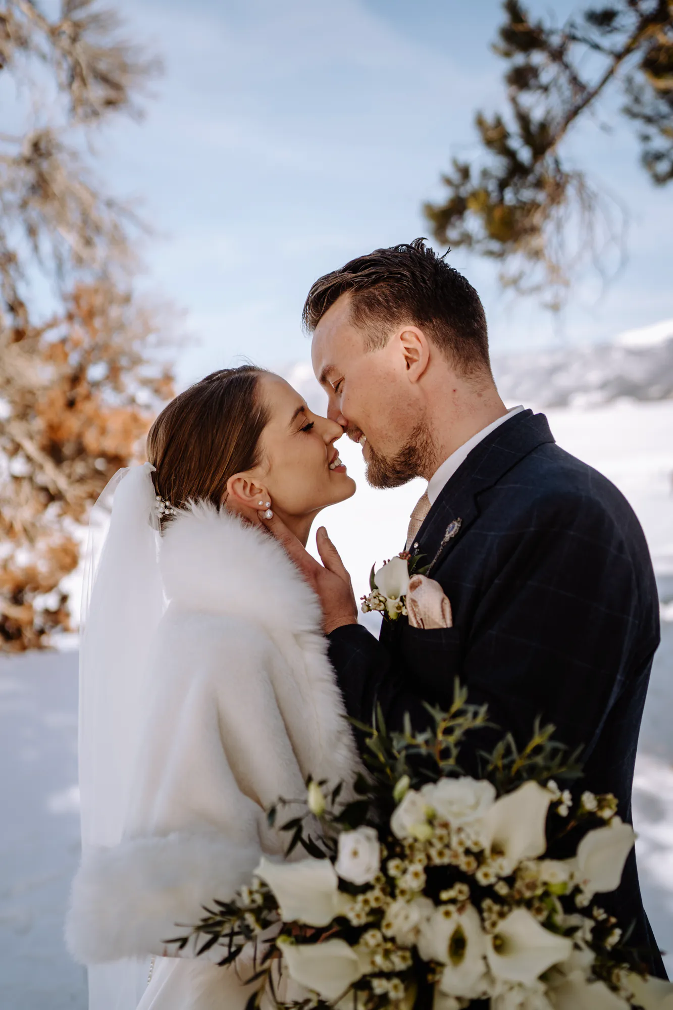 What a mountain wedding: an alpine backdrop, tons of snow, and authentic wedding photos full of emotion.