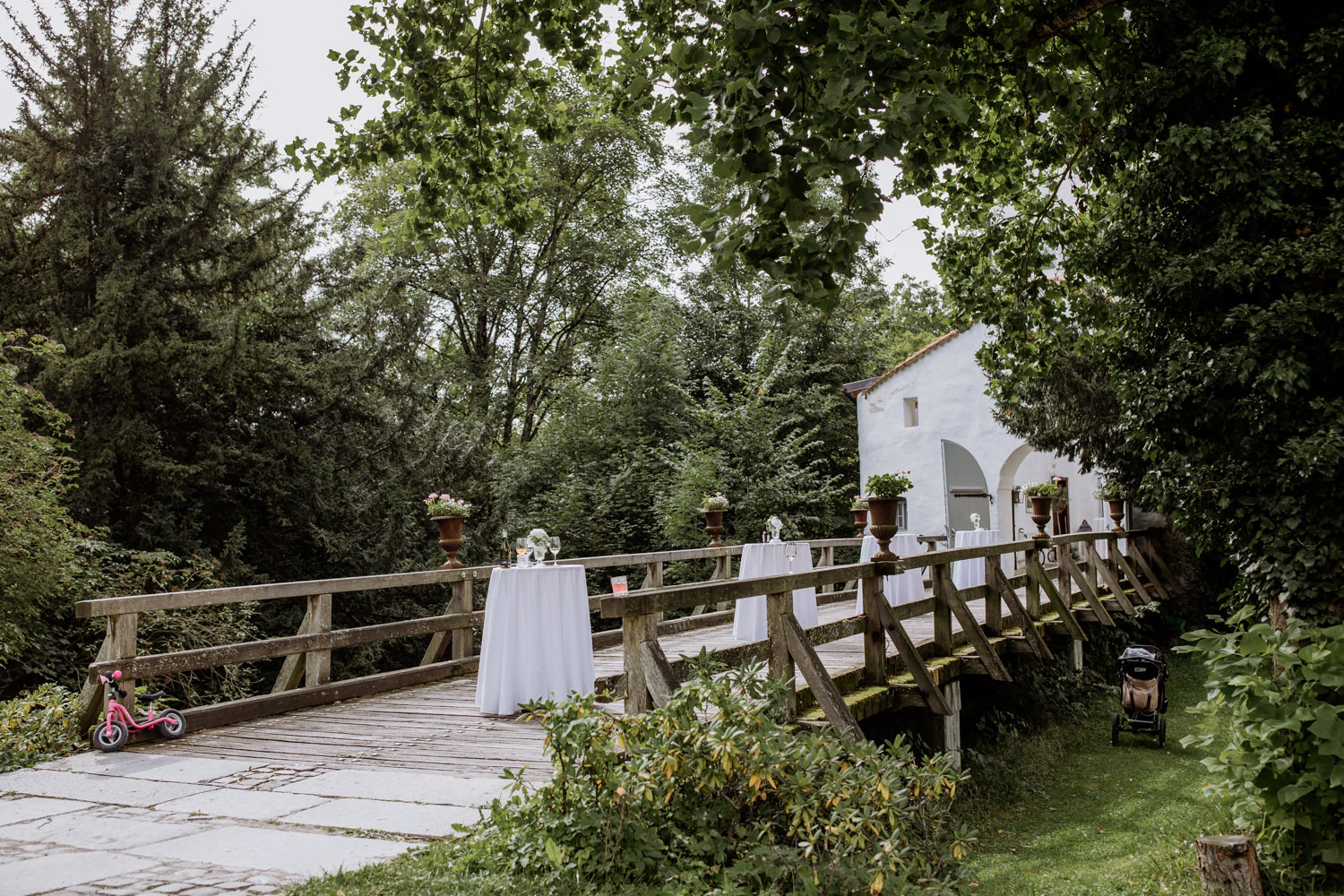 Since the journey to Lake Chiemsee is quite long and I always arrive at weddings well ahead of time, we traveled there the day before. I always make sure to use this time wisely. I take my time to look at the location, get a feel for the light at different times of day, and think about alternatives in case of rain or other unforeseen situations. This is extremely valuable, especially at a large wedding location like Amerang Castle – both for the photography and the wedding video.