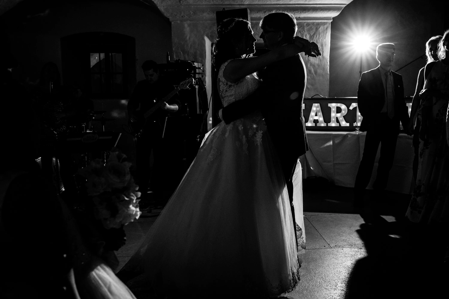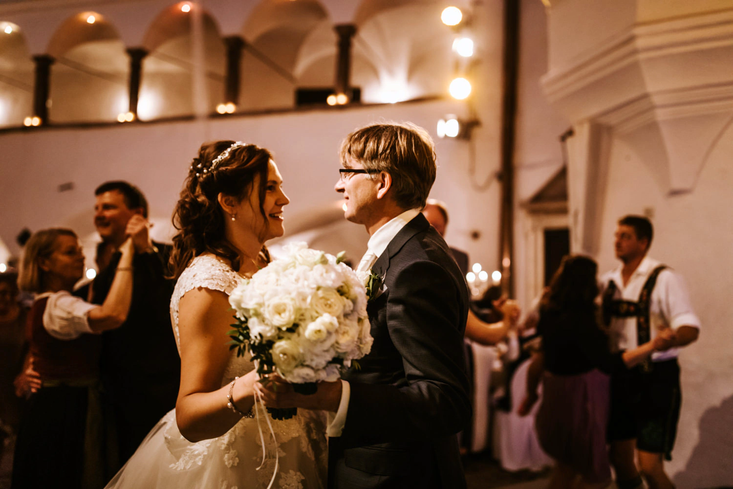 Together with the Isartones, we celebrated late into the night. Here, too, many lively scenes were captured for the wedding video: laughter, dancing, hugs, genuine moments. Afterwards, Christoph and Sabine were able to spend the night in their castle room. How often do you get the opportunity to wake up in historic surroundings after a lively wedding celebration?