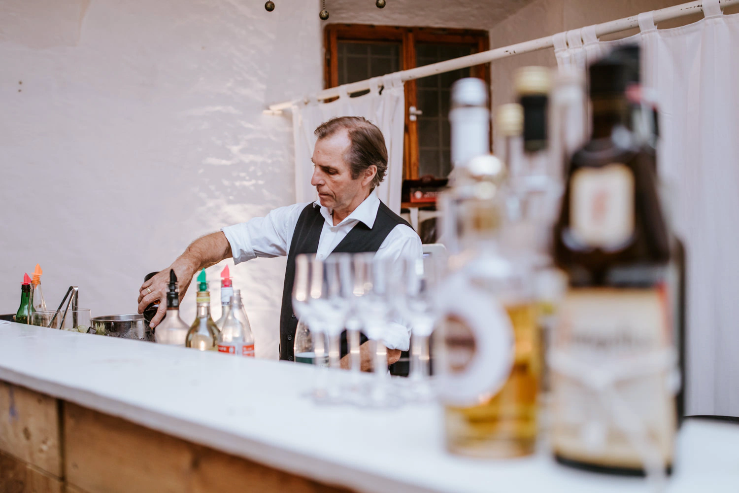 The next morning, the wedding day started for me with Christoph and Sabine getting ready. For me, these hours are among the most important moments of the day. Everything is still calm, excitement is in the air, conversations are quiet, and glances are sincere. This is often where the first very emotional pictures and film scenes are created, which later form the framework for an authentic wedding reportage and a personal wedding video.