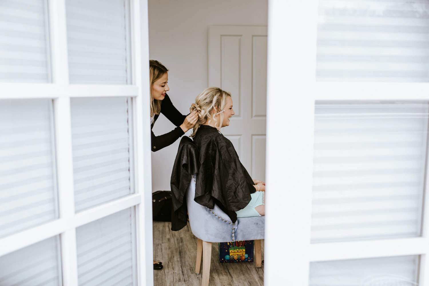 Sarah Obermeier created a natural, timeless bridal makeup look and a hairstyle that suited Sandra perfectly. Nothing overdone, just a look that highlighted who she is. That’s how getting ready photos are made that still move you years later, honest, peaceful, and full of anticipation.
