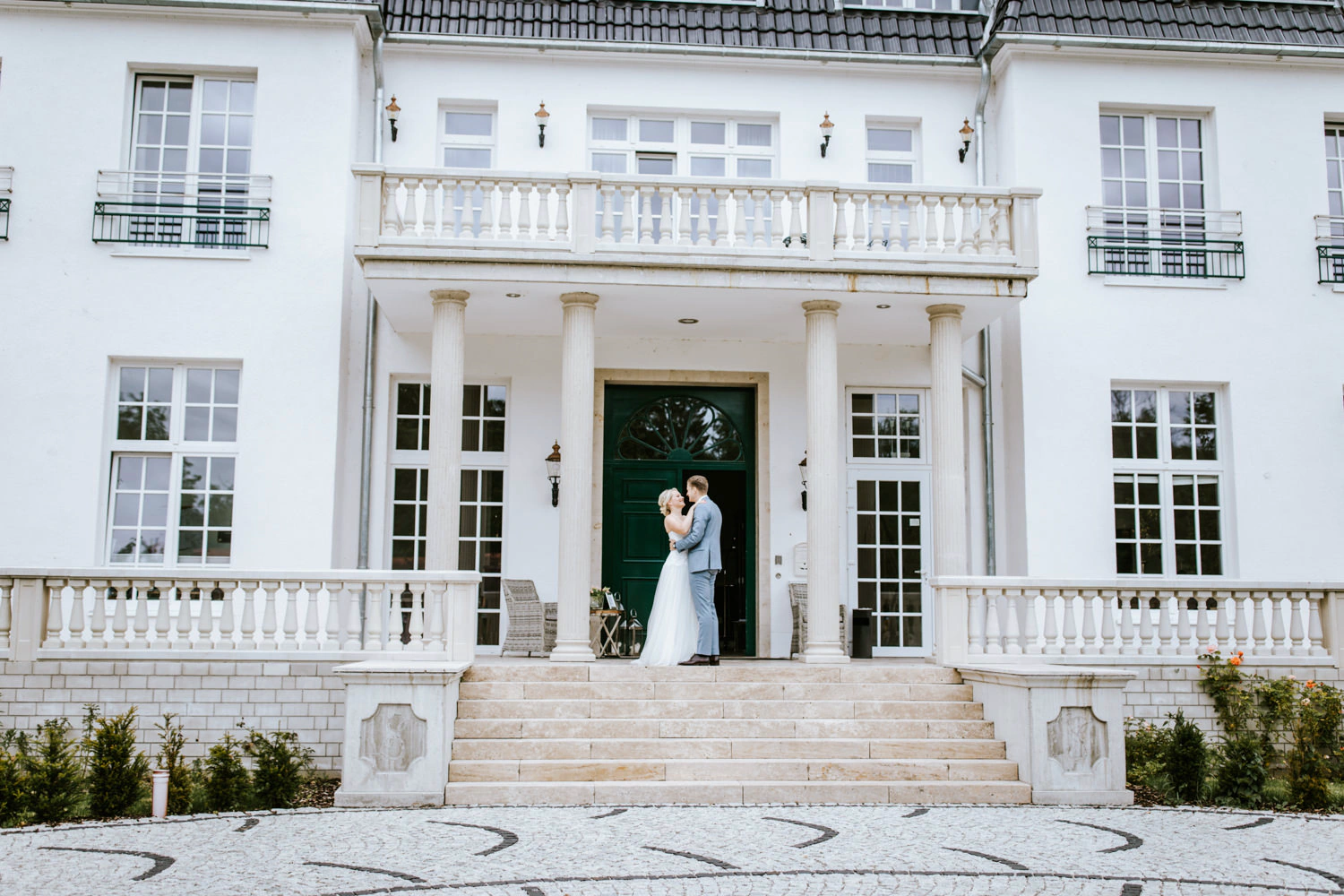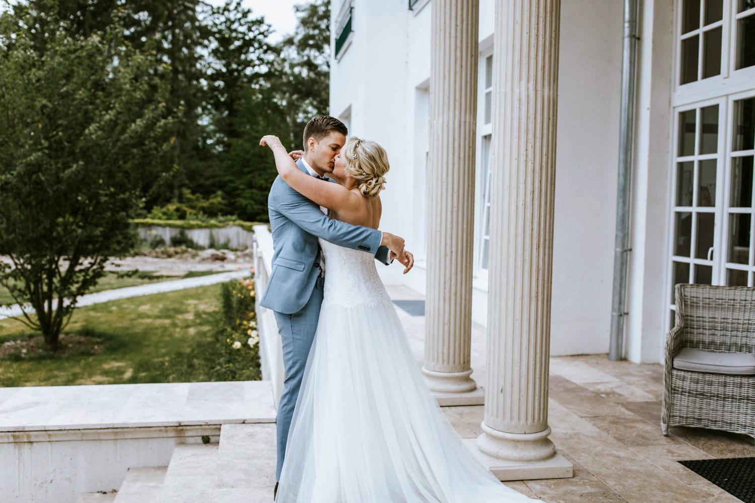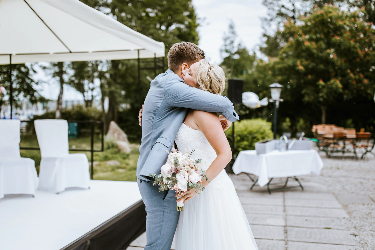 Once they were both ready, one of the most emotional moments of the day followed: the first look. Right in front of the elegant entrance of Hotel Starnberger See Hideaway, Sandra and Marius got to embrace for the first time on their wedding day.