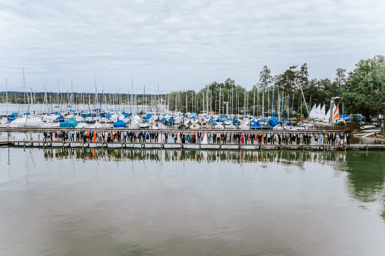 The ceremony was accompanied by Three Notes, whose music added an emotional depth that really touched people. There were soft moments where you could have heard a pin drop, and tearful highs that showed just how connected everyone felt. A wedding on Lake Starnberg truly lives from this mix of nature, emotion, and closeness.