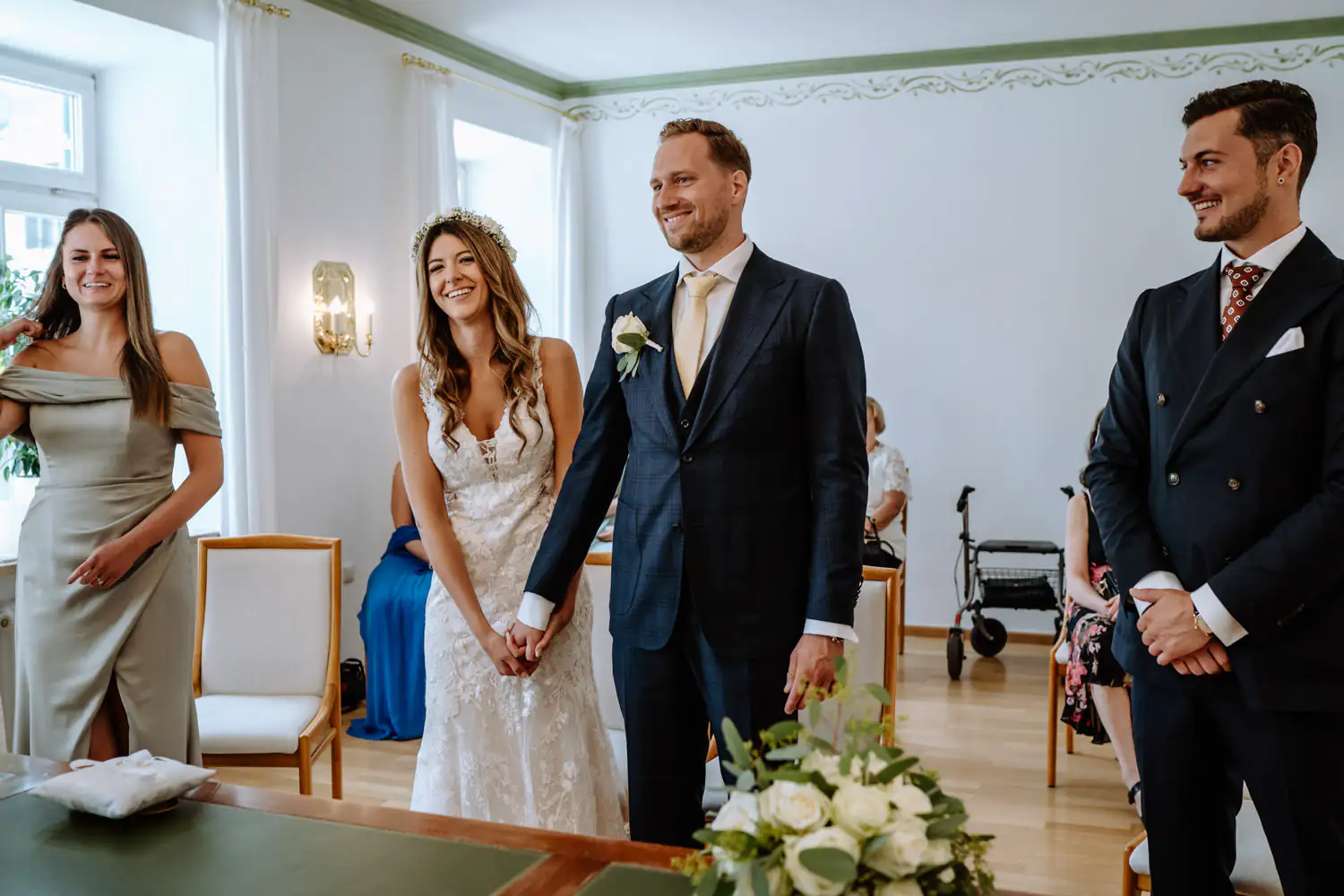 Just before the ceremony came another emotional highlight. Michaela’s dad officially “gave her away” to Thomas. A quiet, deeply personal moment that showed once again how intentionally intimate this wedding was meant to be. Especially at civil weddings at Lake Tegernsee, moments like these are often the ones that stay with you.