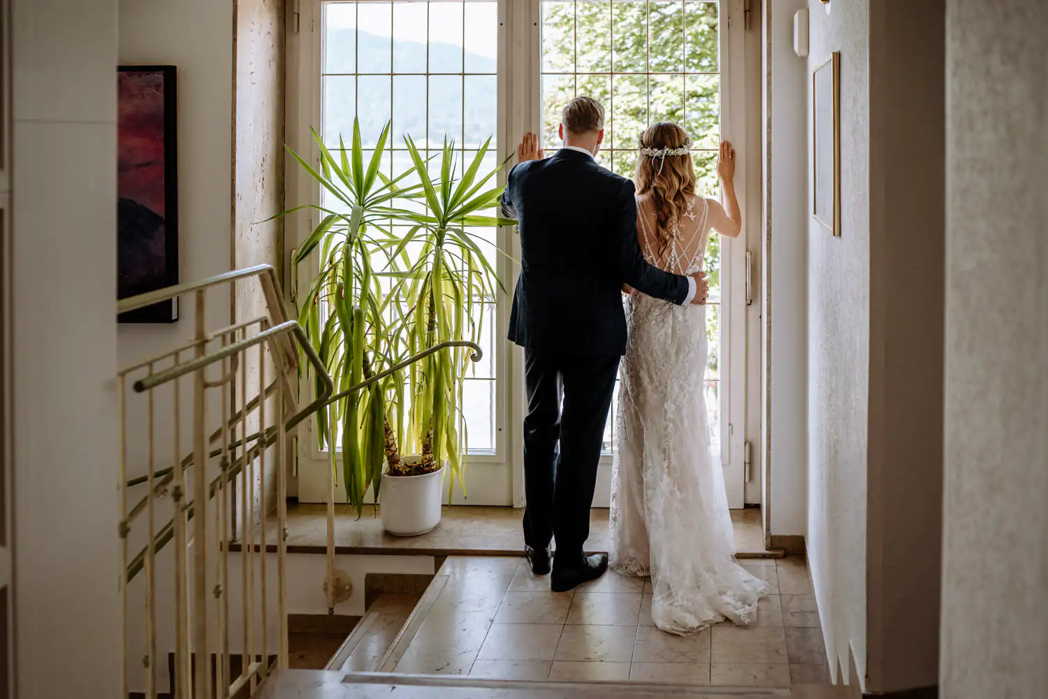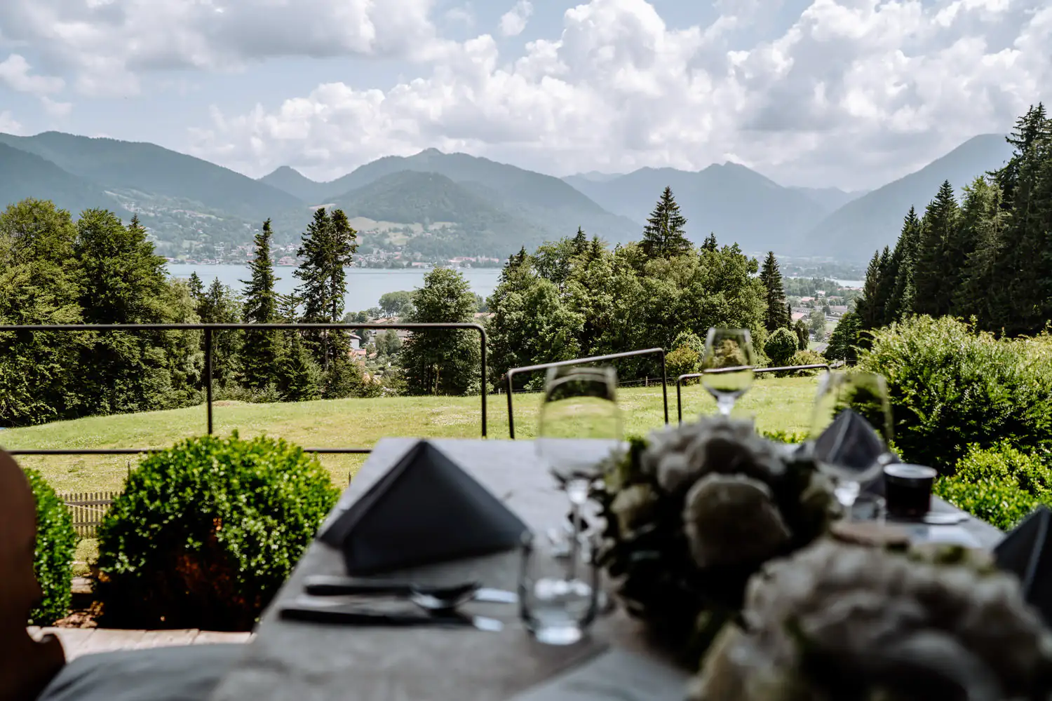 The ceremony at the Tegernsee registry office was calm, warm, and full of honest emotion. Afterwards, we stepped out onto the balcony, where the view opens wide across the lake and the landscape. Water, mountains, and sky create a backdrop that almost feels unreal. For a wedding photographer, this place is a gift.