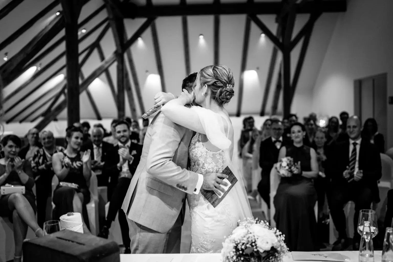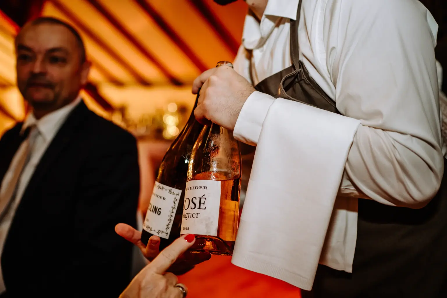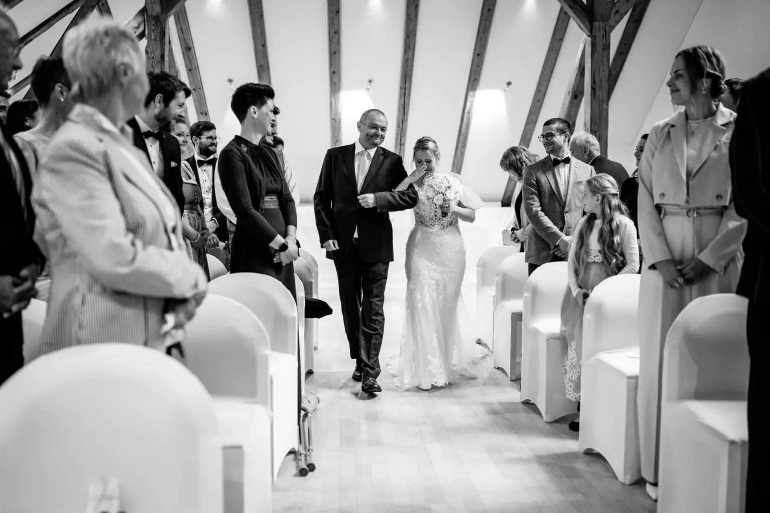 Die Traurede, perfekt auf Marie und Sascha abgestimmt, erzählte ihre Geschichte voller Intimität und Persönlichkeit. Besonders berührend war das Ritual mit den Ringen, die durch die Gäste gingen – ein Symbol der Verbundenheit, das in Hochzeitsfotos für die Ewigkeit festgehalten wurde.