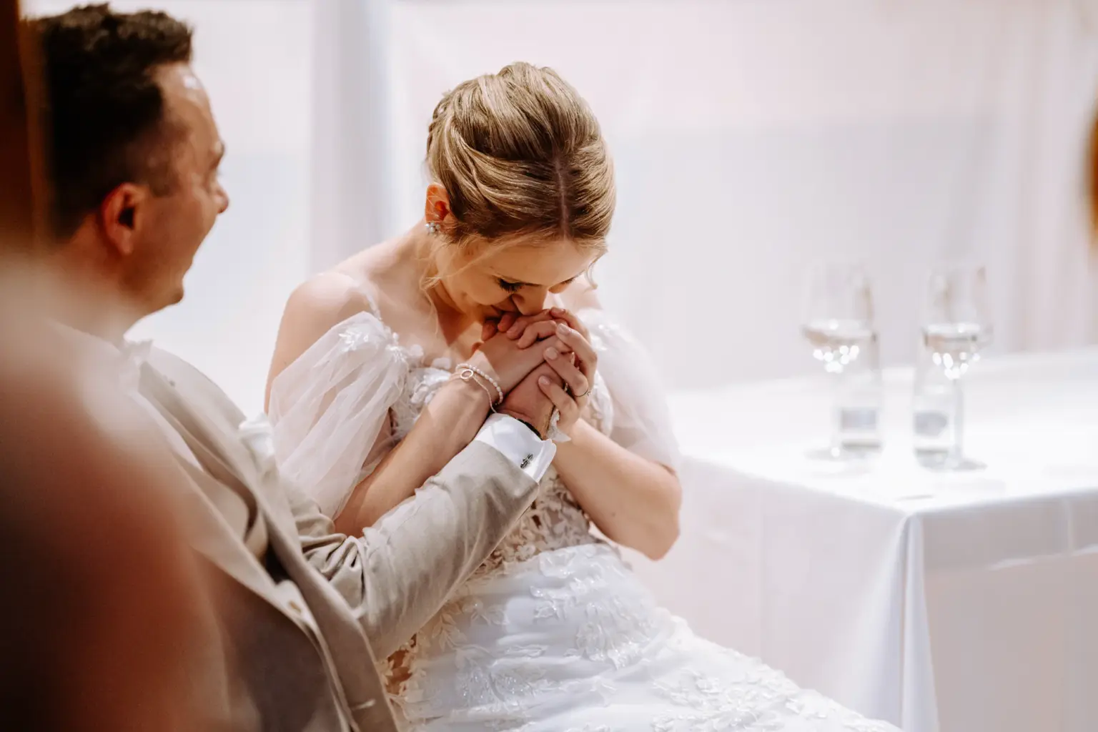 Der First Look zwischen Marie und Sascha war ein magischer Augenblick: Als Maries Vater sie zu ihrem Sascha führte, war es ganz still im Raum. Tränen der Freude flossen, alle Herzen öffneten sich und die Liebe des Paares füllte den Raum. Alle Liebsten konnten dabei sein und auch die Omas durften diese besonderen Momente miterleben.