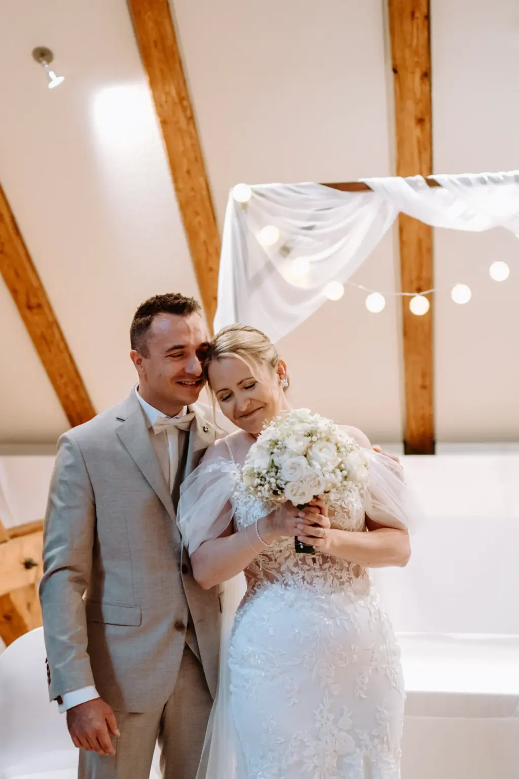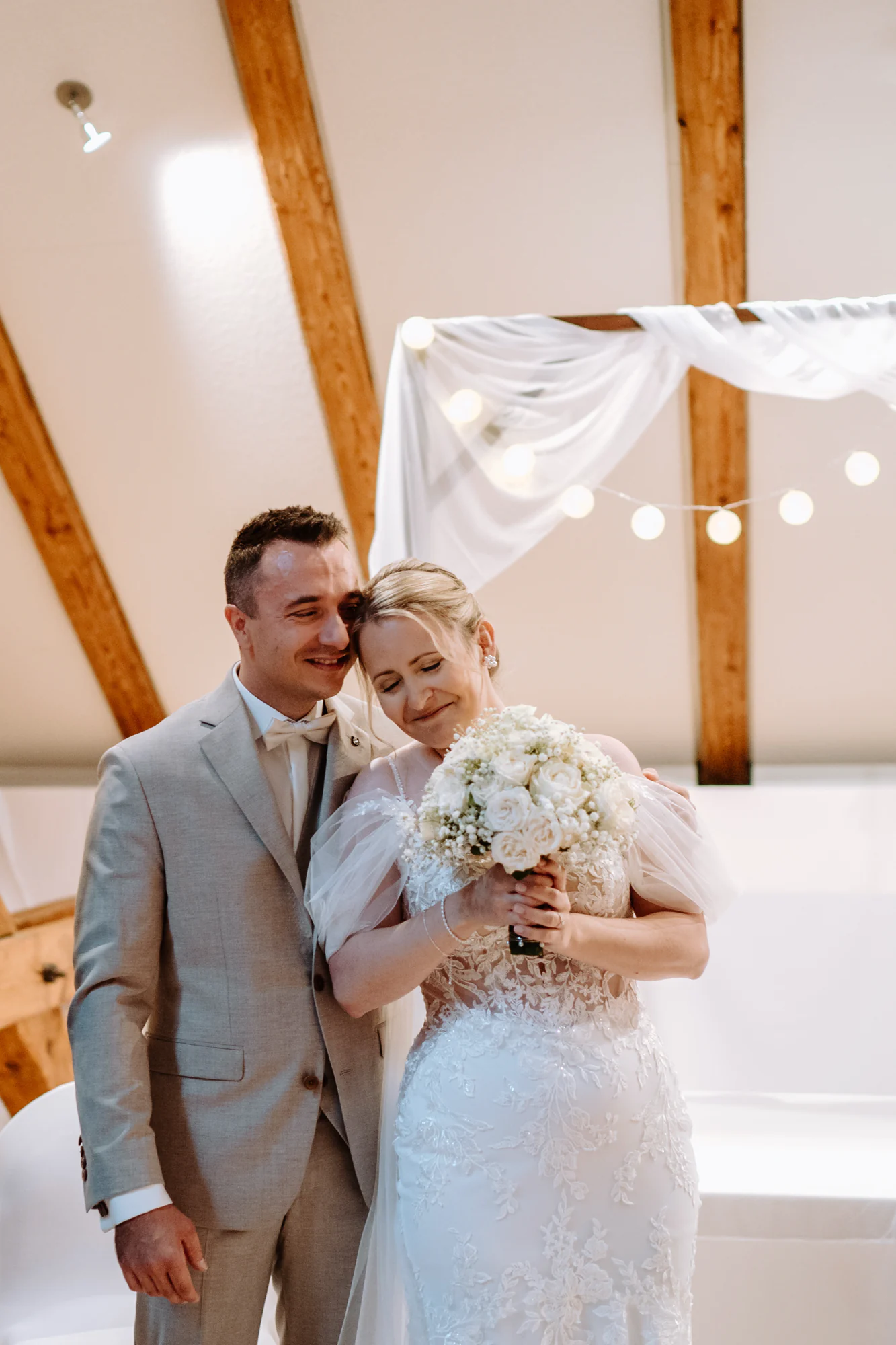 Eigentlich sollte die Trauung im wunderschönen Kräutergarten auf Gut Kerschlach stattfinden. Ein ganz besonderer Ort voller Duft, Farben und Ruhe, perfekt für freie Trauungen. Leider ist es aber manchmal so, dass das Wetter andere Pläne hat, und so wurde die Trauung nach drinnen verlegt.