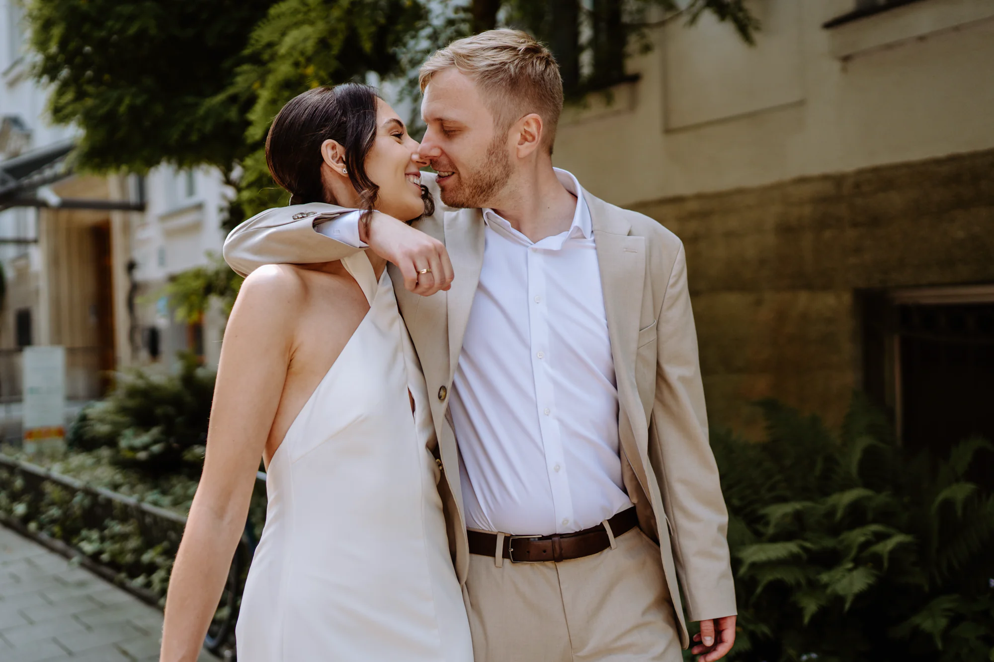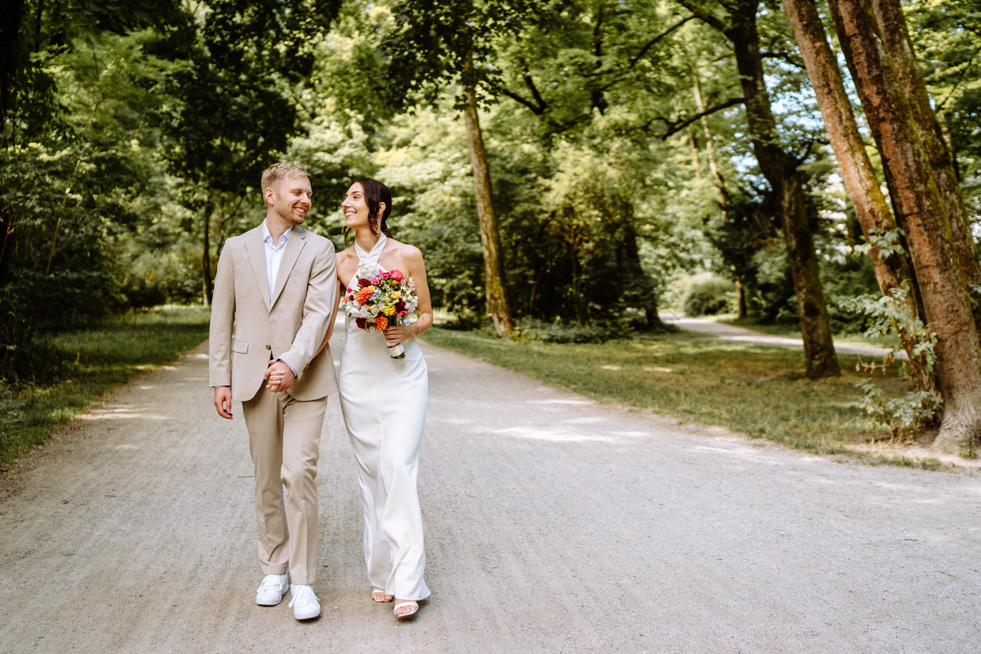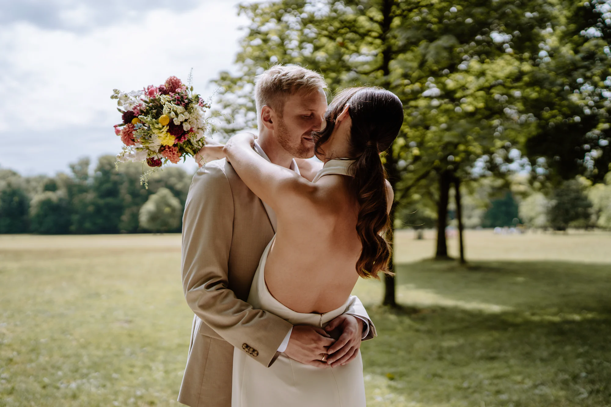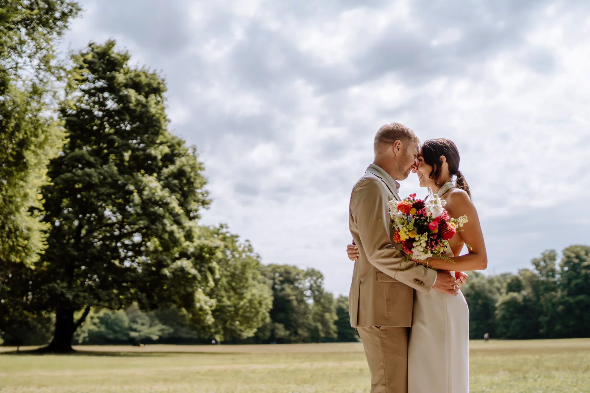 Die Kombination aus dem Standesamt in der Mandlstraße und dem Englischen Garten bietet einen Rahmen, der genau diese Art von standesamtlicher Hochzeit ermöglicht. Ruhig, persönlich und unaufgeregt. Ein Ort für Paare, die Wert auf Nähe legen und sich Hochzeitsfotos wünschen, die zum einen Natur aber auch die wundervolle Architektur Münchens zeigen.