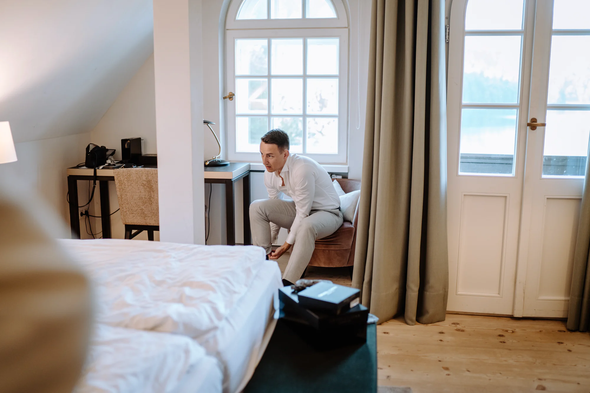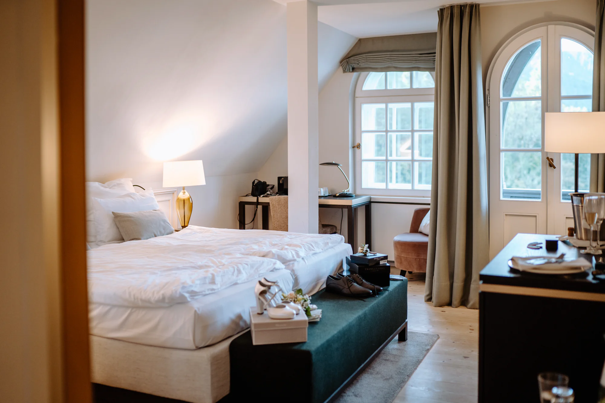 Der Tag begann im wunderschönen Ameron Hotel, direkt am Fuße von Schloss Neuschwanstein, mitten im Allgäu. Beim gemeinsamen Getting Ready durfte ich ganz nah dabei sein, als sie sich auf diesen besonderen Tag vorbereiteten. Die Atmosphäre war ruhig und zugleich voller Vorfreude.